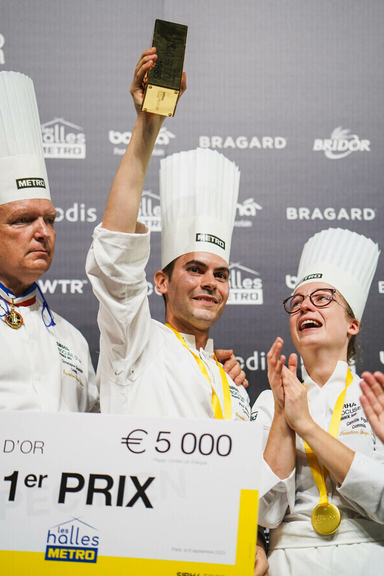 « J’aime l’esprit de compétition, avoir des objectifs. Concourir au Bocuse d’Or était une suite logique. Avec Camille et Christophe, nous partageons la même exigence et ce goût de la victoire qui nous anime au quotidien. » Paul Marcon, candidat France au Bocuse d’Or