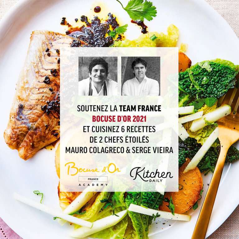La Team France Bocuse d’Or & KitchenDaily, s’associent pour une semaine gastronomique, du 6 au 13 mars 2021, au profit de Davy Tissot, le candidat français au Bocuse d’Or 2021, le concours de cuisine le plus prestigieux au monde. Pour l’occasion, Mauro Colagreco, chef 3* Michelin du Mirazur à Menton (élu meilleur restaurant au monde en 2019/2020), et Serge Vieira, Chef 2* Michelin du restaurant Serge Vieira à Chaudes- Aigues (Bocuse d’Or 2005), ont imaginé, six paniers recettes inédits, à réaliser à la maison, mêlant leurs identités culinaires respectives et des éléments de la célèbre compétition. Au travers des paniers recettes exclusivement imaginés par les chefs étoilés Mauro Colagreco et Serge Vieira, la Team France Bocuse d’Or & KitchenDaily souhaitent offrir aux gourmands et gourmets, l’occasion d’exprimer leur passion culinaire et se régaler avec de délicieux repas sains, frais, équilibrés, à composer en trente minutes chrono !